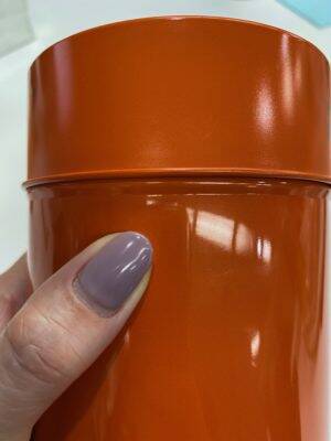 ▼手作り缶、と呼ばれる茶筒。フタと本体のつなぎ目に凹凸がありません。(これは私物で、開化堂さんのものではありませんが・・・)