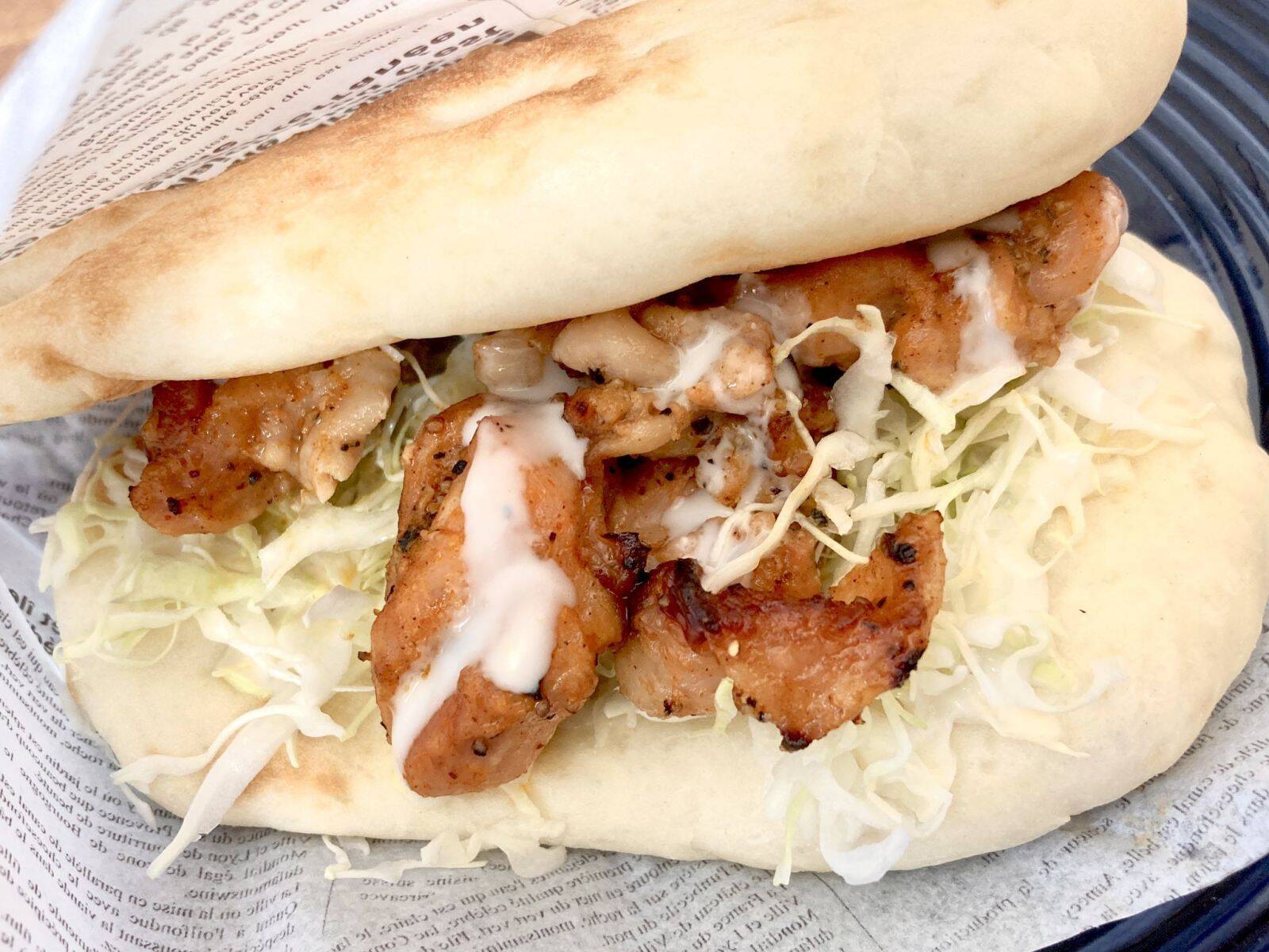 ナン2枚で、キャベツとケバブチキンをサンドするだけ!