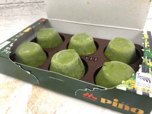 日本一予約が取りづらいといわれる大人気日本料理店の「くろぎ」監修のピノ。第1弾の「焦がしみたらしキャラメル」に続く第2弾。パッケージは京都の老舗手ぬぐい屋「永楽屋」とコラボレーションしたオリジナル絵柄3種類。くちどけの良い抹茶コーティング、宇治抹茶使用の濃厚な抹茶アイスに、北海道あずきを使用したこしあんをブレンド。抹茶とこしあんの風味、バランスも良く上品な味!抹茶の風味にほんのり香るこしあんの味がクセになります。さすがくろぎ!