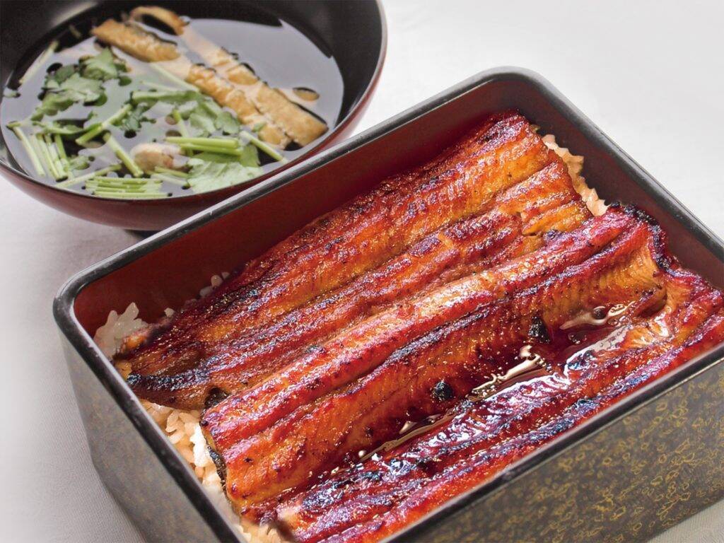 植野:うなぎって頭から尻尾にかけて、一番脂が乗っているのは腹の辺りです。で、頭はきめ細かい肉質で、尻尾はきゅっと締まってますね。で、頭から順に腹、尻尾の食べるのが一番美味しく食べられます。で、うな重です。これは多くの店で、手前の左が頭なんです。で、奥の右が尻尾なんです。