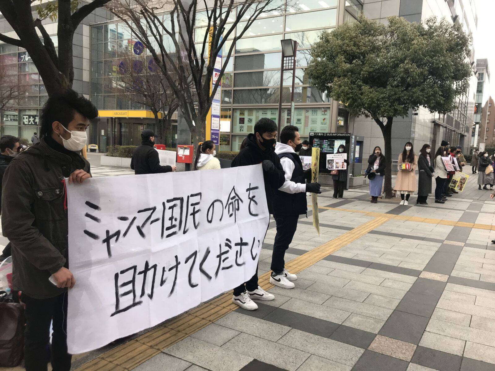 「ご通行中の皆様、こんにちは。私達は、在日ミャンマー人です。今まで1400人以上の犠牲者が出ており、1万人以上の国民たちが拘束されたままです。避難されている人々に支援するため、現在、募金活動を行っております…。」