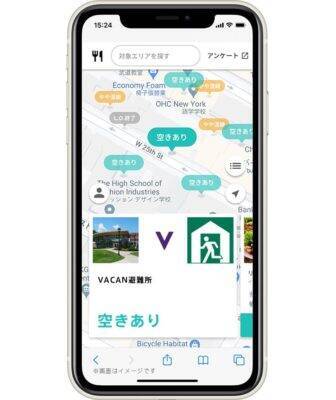 こちらは、「VACAN(バカン)」という名前のサービスです(「vacancy=空席」が由来)。マップ上に混み具合が表示される仕様は、今年の6月からスタートしたそうですが、現在、500以上のレストランや喫茶店、商業施設などで導入。