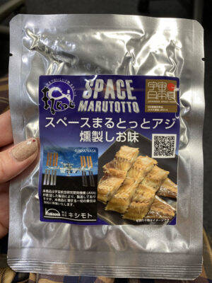 ★スペースまるとっとアジ 燻製しお味初めて宇宙へ行く干物、それが「スペースまるとっとアジ 燻製しお味」という商品。