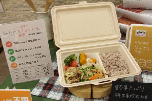 ▼試行錯誤の一つ、グリーンハウスの開発した、スマートミールの基準を満たしたお弁当「からだ喜ぶ なんかいいな弁当」。健康的なテイクアウトメニューです。