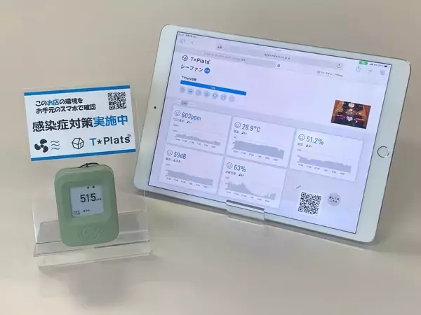 ▼小型のセンサーで店内の衛生環境を測定する、「T*Plats(ティ・プラッツ)」