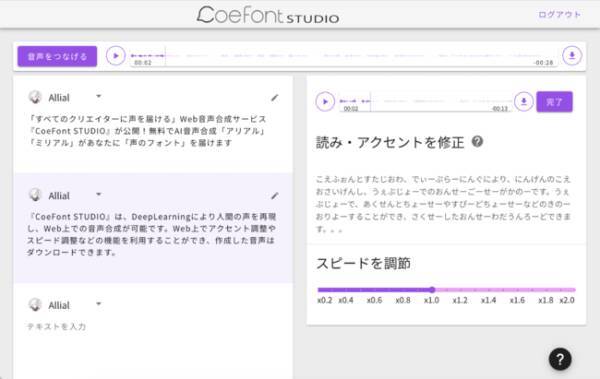 ▼CoeFont STUDIO編集画面(プレスリリースより)