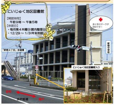 「葛飾区の新宿(にいじゅく)地域に「東京葛飾赤十字母子医療センター」という産院が移転をします。この病院の中に、「にいじゅく地区図書館」が6月2日にオープンいたします。小児科と産婦人科になりますので、児童書の割合を半分ぐらいまで児童書を用意しまして、一般の本が1万冊、児童書が1万冊をそろえて、産院の行う事業と一緒になって、子供たちを育てていく上での情報提供ができる場所と考えています」