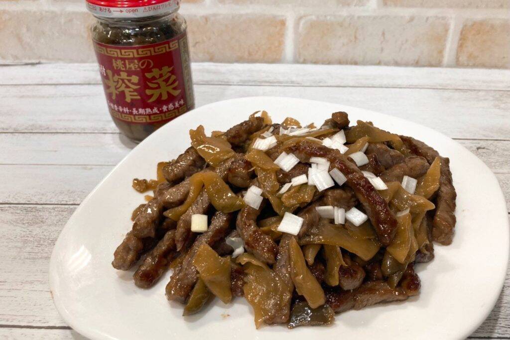 ザーサイと牛肉を一緒に炒めることで、お肉に味がよく染み込んで、桃屋の「味付搾菜」にしか出せない、風味豊かな中華風の炒め物を簡単に作ることが出来ます!