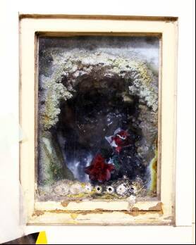 ・第3位「バラの小窓」(都営浅草線 東日本橋駅)流れ出る漏水に2輪のバラがそえられている、なんともアーティスティックな「駅もれ」