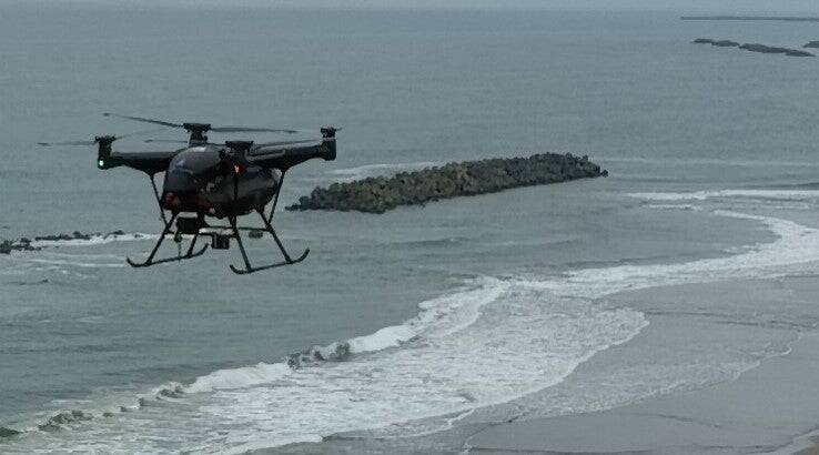 元々コンクリートメーカーなので、山奥のダムや橋の補修に、スタミナのあるドローンを開発していたそうですが、この技術を「津波」の監視にも応用しています。
