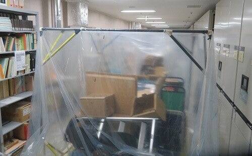 そうです。収蔵庫の中にビニールテントを建てまして、そこのテントの中に資料を入れ、薬剤を導入すると。