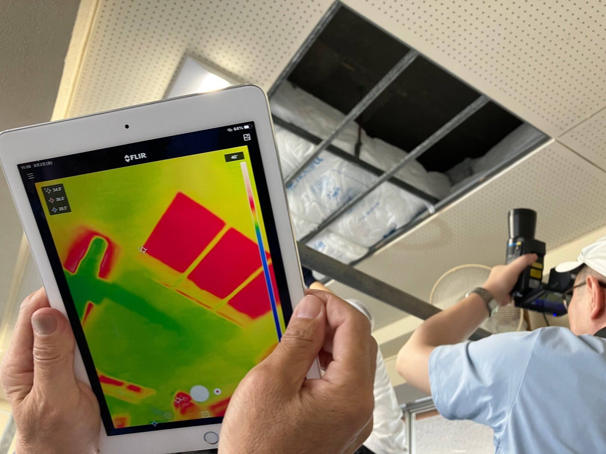 学校を涼しくしようと。まず最優先に屋上の熱を断熱する、遮ることにしましょうと。天井の一部に穴開けて、断熱材を中に入れてあげる。とそうすると熱が来なくなる。