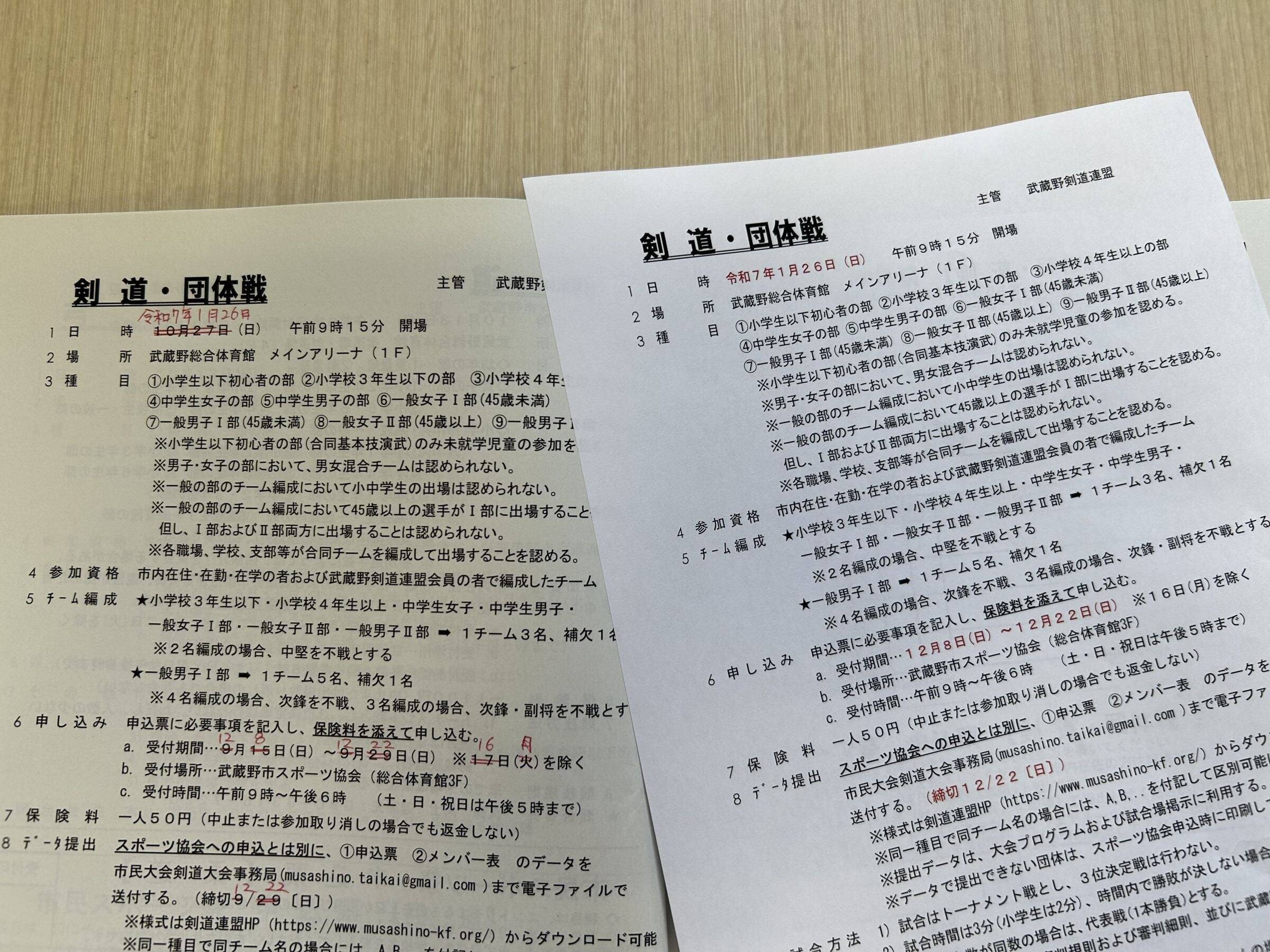10月27日開催予定の「市民スポーツ祭・剣道大会」は、開催ができなくなり、1月への延期になりました。開票所になったことによるものです。しょうがないかな。武蔵野市は、ずっと選挙については総合体育館のメインアリーナを開票所に使っていたので、一番プライオリティの高い、市では事業になります。基本的には剣道連盟は各申し込みをされた方に「開催が延期になります」という連絡をとっていただいて、私の方は、申し込み金を払った方に還付するための準備をした。参加費は基本的には剣道の場合は1人50円なんですけど、これは保険代です。特に亜細亜大学とか成蹊大学とかが今度1月ですと、試験の時期に入るので、そういう学生が出られなくなるのかなというのは危惧しています。市民に楽しんでいただくために「延期」という選択をしたので、ぜひまた参加してもらえるようなPR活動をしていきたいと思います。