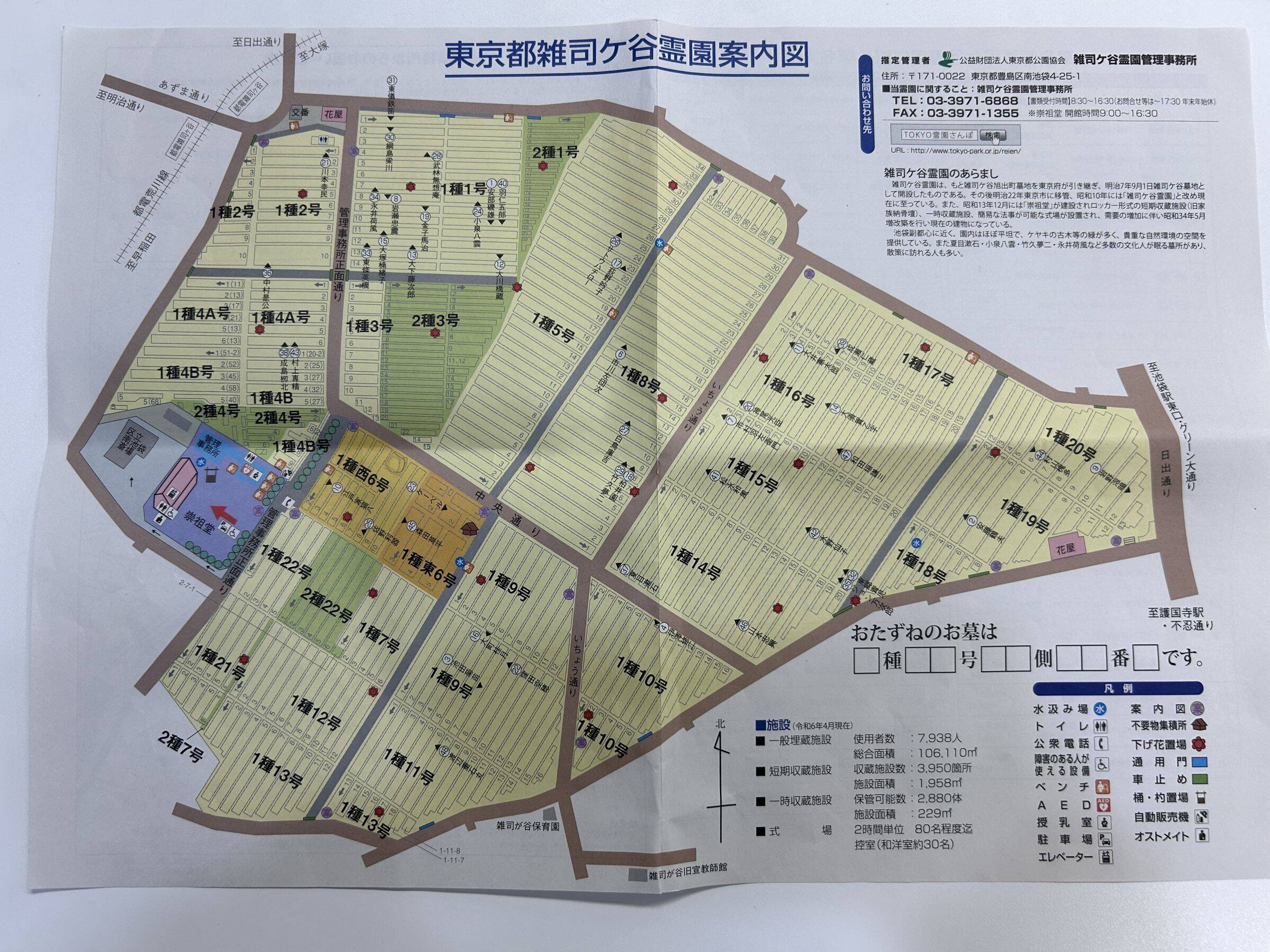 <雑司ヶ谷霊園では、案内MAPを無料で配布しています>