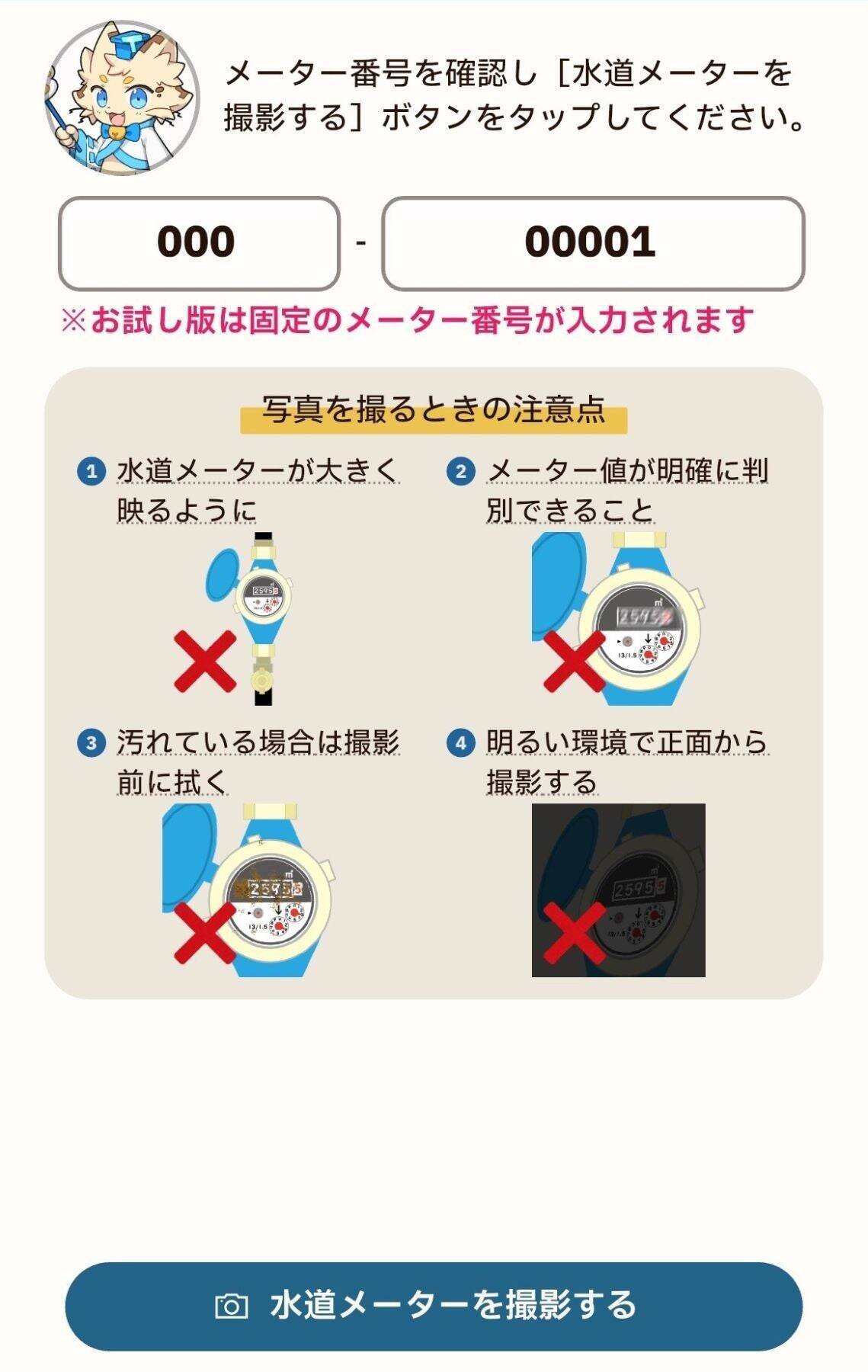 自分で水道検針をすると、水道料金が50円引きになります。足利市が開発した「足利市マイ水アプリ」を使って、市民が自宅の水道メーターをスマートフォンで撮影し、専用アプリから送るという仕組みです。2か月に1回、メーターの写真をパシャリと撮影するだけで、データが市に送られます。