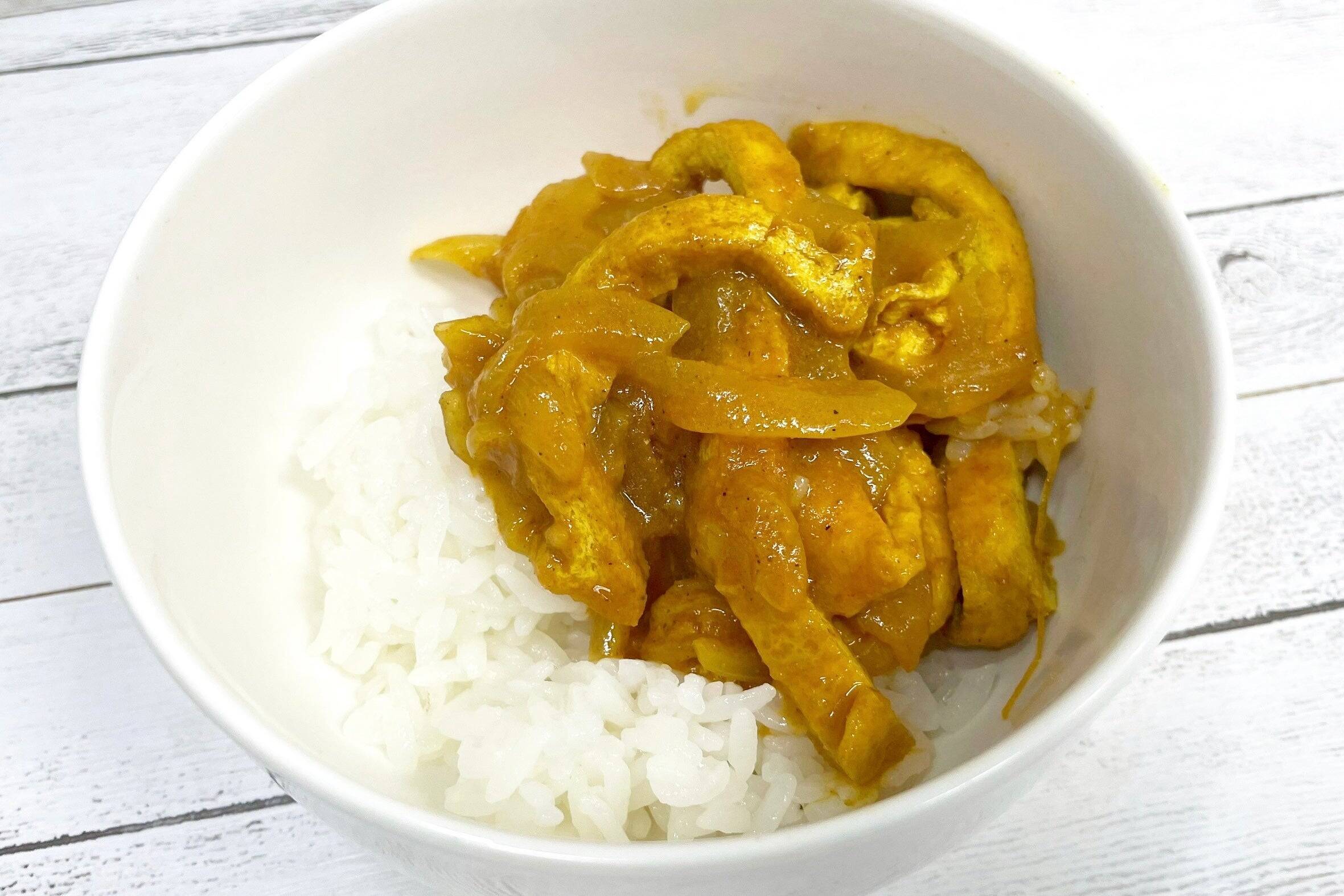 さらに、カレー粉を入れて全体をなじませながら炒めたら、油揚げを入れます。