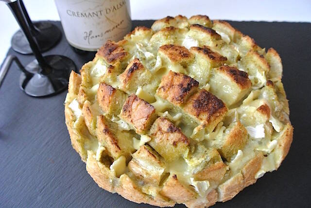 2.上記のペーストを格子状に切ったパンの間に塗り、小さく切ったカマンベールチーズを詰め、仕上げに上にもパセリのみじん切りをのせて焼けば出来上がり!