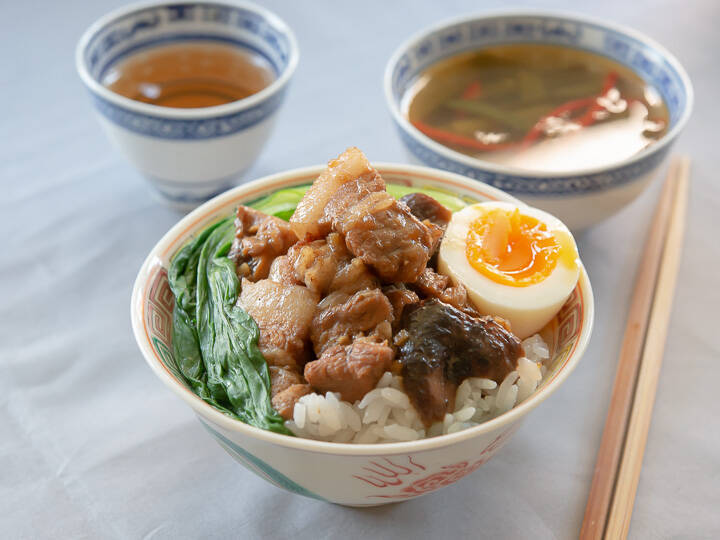 豚の骨付き肉をつかったボリュームたっぷりの排骨飯。台湾の新幹線で食べられる「台鉄弁当」もおいしいんです。アヒルのゆで卵も台湾ならでは。