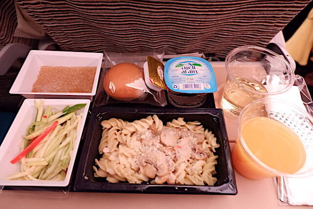 ちなみに機内食の肉は、イスラム教徒が安心して食べられるハラルミートを使用しています。エティハドの長距離便ではいつもベジタリアンメニューが選べるそうですよ。特別機内食でなく通常の食事でもベジタリアンが選べるエアラインは、なかなか珍しいと思います。