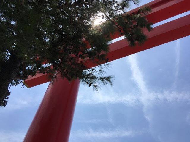 おのころ島神社に着くと、まず目を引くのが、巨大な鳥居です。なんとその高さ21.7m。かなりの高さに圧倒されます。