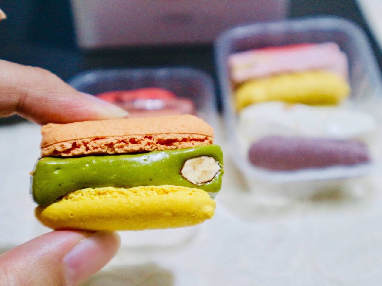 シリーズ3つ目は、小茶栽堂のマカロンヌガー。カラフルなマカロンでヌガーを挟んだこのお菓子は、とっても可愛くて写真映え抜群です。マカロンのサクッと甘酸っぱい味わいと、柔らかくて甘いヌガー、たくさん入ったナッツ類のハーモニーがおいしいお菓子です。
