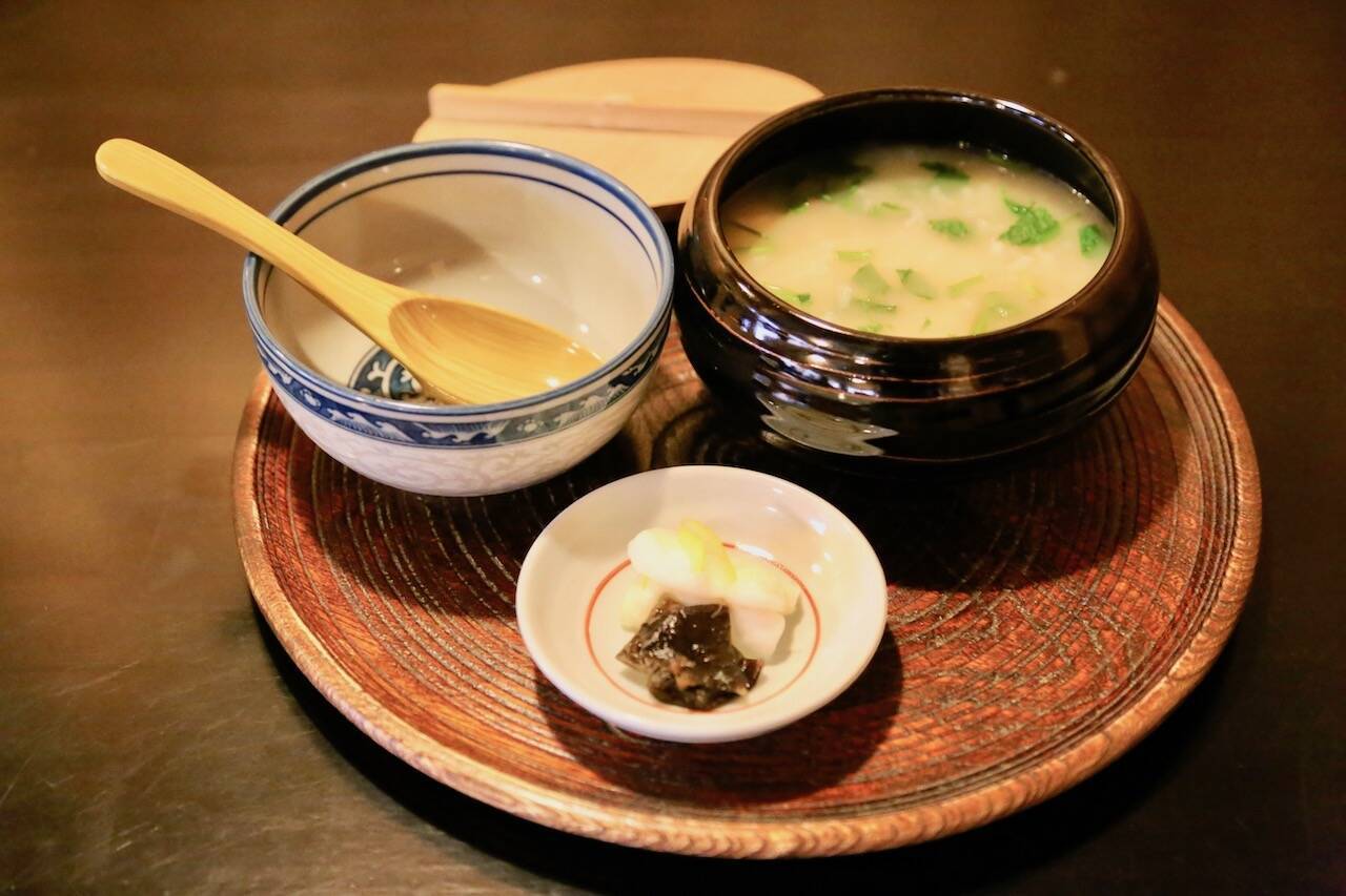 今回いただいたのは冬季に提供される「うずらがゆ」。3月16日~11月30日には「朝がゆ」が用意されます(どちらも4,500円/税サ込)。ちょっと贅沢なお値段ですが、夜の懐石料理が2万7千円~という老舗料亭の味を楽しめると考えれば大いに価値あるものでしょう。