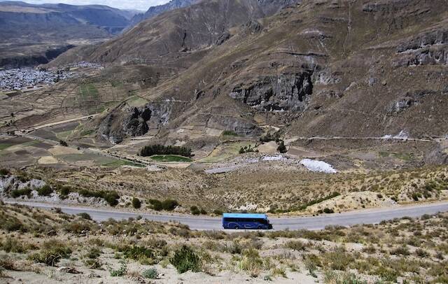 地を行くか、空を行くかですが、バスでアンデス山脈を超えていく道中は好奇心を駆り立ててくれます。こんなところに人が住んでいるの!?と思うような標高の場所に子どもがいたりと、車窓を見ていたりしても飽きませんが、標高4000mぐらいの場所も通るので高山病の心配があるのはデメリットかも。