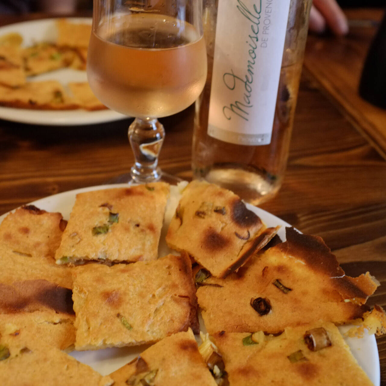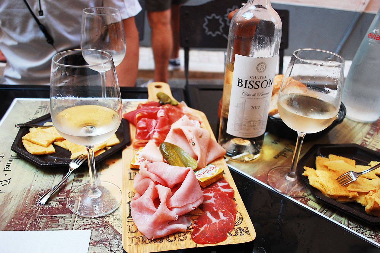 南仏名物のソッカ(Socca)は、小麦粉で作られる生地をフライパンで焼いたシンプルな料理で、食事前のおつまみに手ごろな感じ。アンティーブにあるビストロやカフェなどでよく目にするご当地メニューで、お店によってふわふわなソッカやカリカリのソッカなど、それぞれスタイルが違うようです。各お店の違いを味わってみるのも楽しいかもしれません。