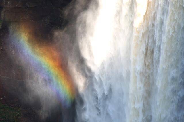 離陸して一時間くらいたった頃でしょうか。ギアナ高地のジャングルがどこまでも続く窓の外に、ぽっかり空いた窪地めがけて白糸の束を落とす。