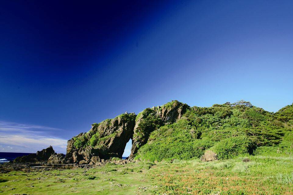 「ミーフガー」とは、400万年前に二つの岩がぶつかって出来たと言われている、高さ20mを超える久米島観光名所のうちの一つです。方言で「女性岩」という意味があり、子宝祈願で訪れる人も多いパワースポットになっています。