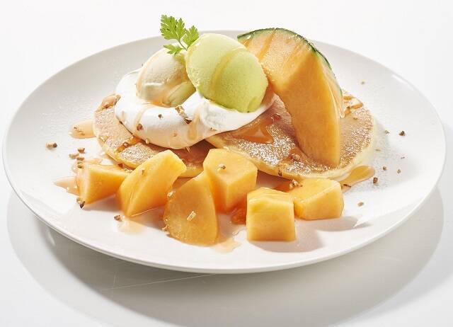 北海道産らいでんメロンとふわふわホイップのパンケーキ