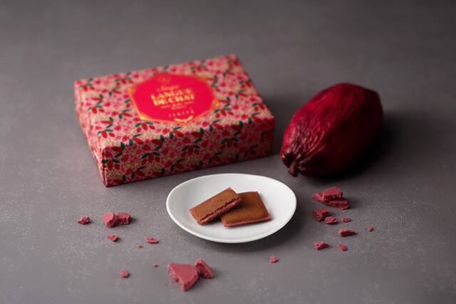 白い恋人の石屋製菓が手掛けるISHIYA GINZAが新フレーバーとして完成させたのは、ルビーチョコを使ったラングドシャ。ココア風味のラングドシャでルビーチョコを挟んだ期間限定商品です。