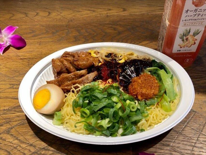 ペアリングドリンクとして提案されていたのは「成城石井 オーガニックハーブティー レモングラス&ジンジャー」。すっきりとした味わいで、麺の脂っぽさが中和されること請け合いです。