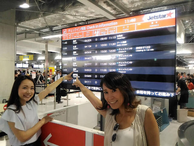 成田発は13時。ジェットスターの庄内への初就航をカメラに収めようとするメディアが多く詰めかけています。ジェットスターとしては東北地方へ初の乗り入れ。搭乗者にはバージンフライトの記念品も配られて、初便を祝う一体感が生まれる心地好い雰囲気。