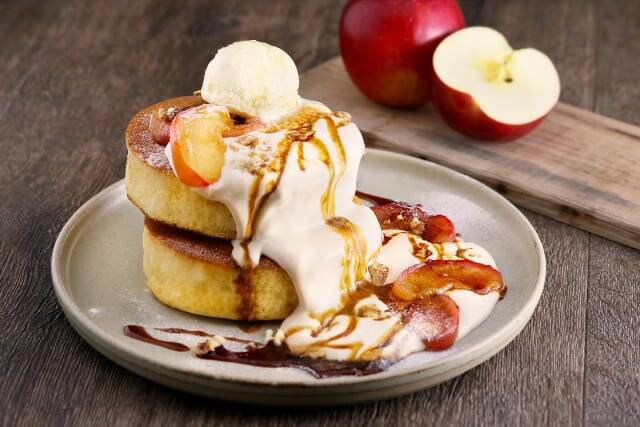 焦がしキャラメルとりんごのパンケーキ/シングル 1,180yen ・ダブル 1,480yen