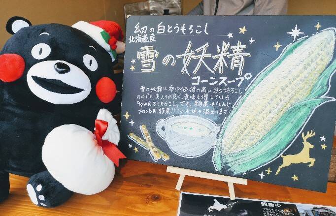 今年はイベントとのコラボ企画として、北海道富良野産幻の白とうもろこし「雪の妖精」のコーンスープを販売していました。夏の富良野の萩原農園に行って、直接、集荷買付を行ったそうです。