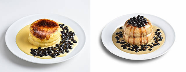 パンケーキにタピオカやさまざまなソースがかかったメニュー