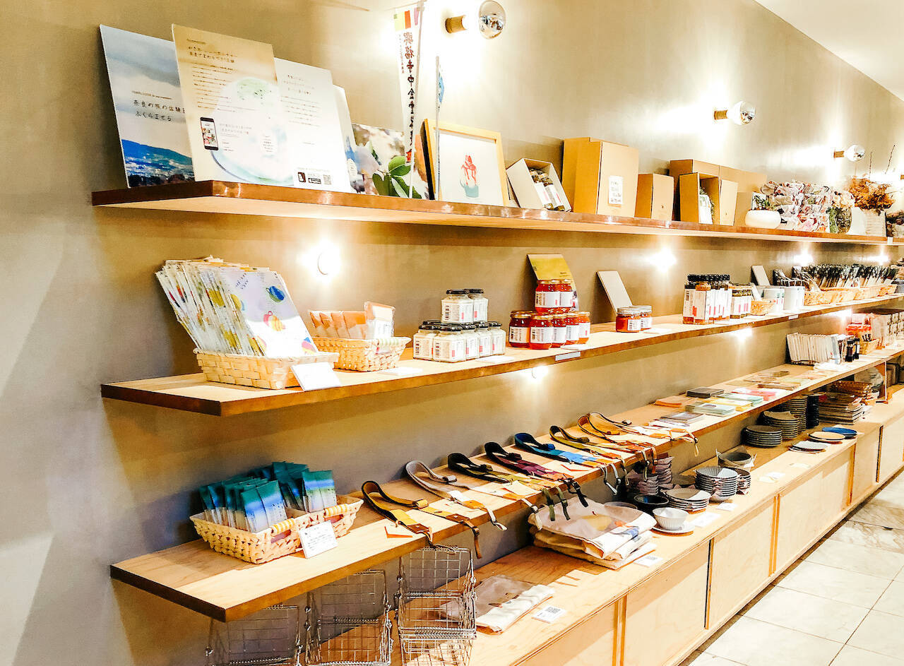 店内では、飲食スペースの他にもギフト・お土産コーナーもあります。先ほど紹介した柿の葉茶の茶葉や奈良ゆかりの雑貨がたくさん並んでいました。