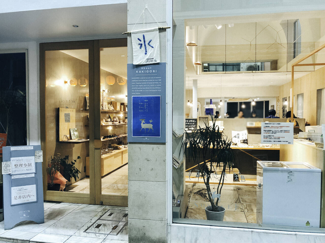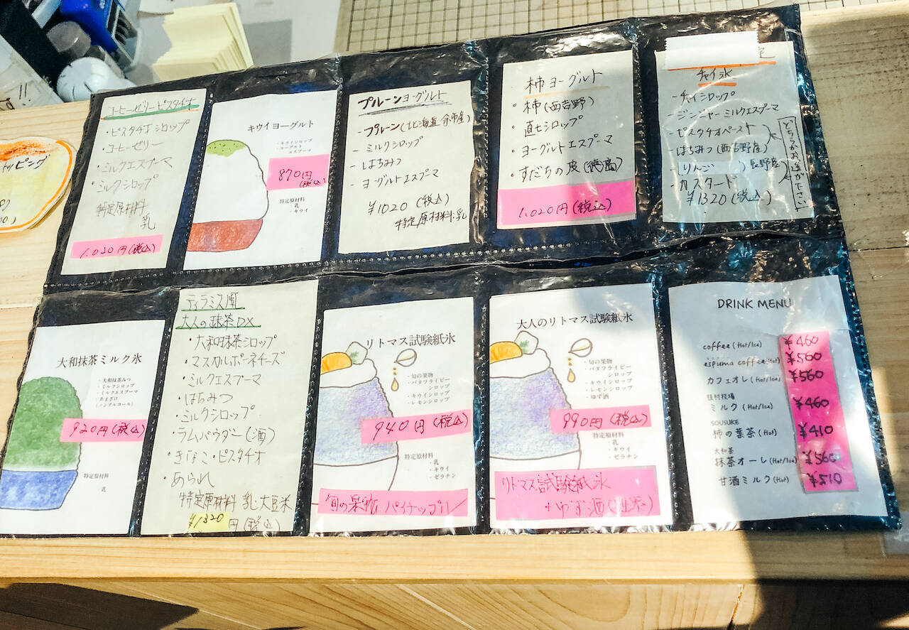 店内は削氷機が2台、37席とかき氷店としては広い店内。毎朝9時半から1日分の整理券が配布され、夏場はオープンと同時に1日分の整理券が完売してしまうほどの人気ぶりだそう。