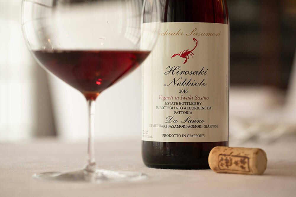 上写真:自家製ワイン「弘前ネッビオーロ」。