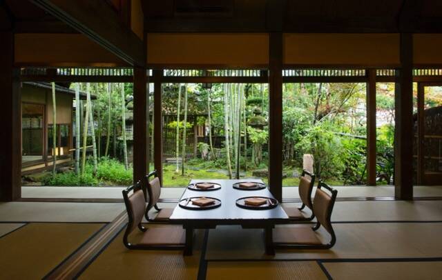約2,000坪ある広大な敷地には福井県から移築した宿坊や千利休の「待庵」を写した「茶室 む庵」ほか、大小の離れが点在。竹林を抜ける風や小川の水音など、四季折々の味わいをおもてなしの心とともに堪能できます。