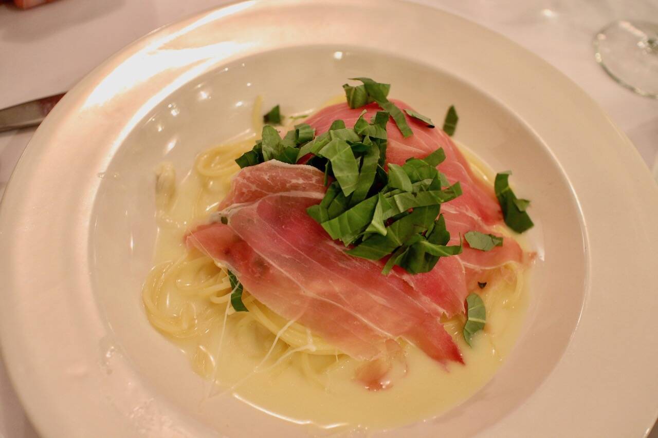 ここの大人気メニューは、ウニのリングイネ「Linguine, Fresh Sea Urchin, Pink Sauce, Fresh Basil」 (ランチ23ドル、ディナー26ドル)や、パルミジャーノレッジャーノがたっぷり絡んだスパゲッティ「Spaghetti, Parmigiano Reggiano & Parma Prosciutto, Fresh Basil」(ランチ19ドル、ディナー21ドル、写真一番上)など。
