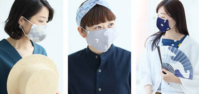 京都のテキスタイルブランドが展開する「高島縮(ちぢみ)テキスタイルマスク」は、日本独自の伝統的綿織物、縮(ちぢみ)で作った夏向けマスク。縮のシボの凹凸が肌への密着を防ぎ、吸汗性や放湿性にも優れていることから、体感温度はマイナス2℃と言われています。模様のバリエーションも豊富で、ファッションの一部に取り入れられそうなマスクです。