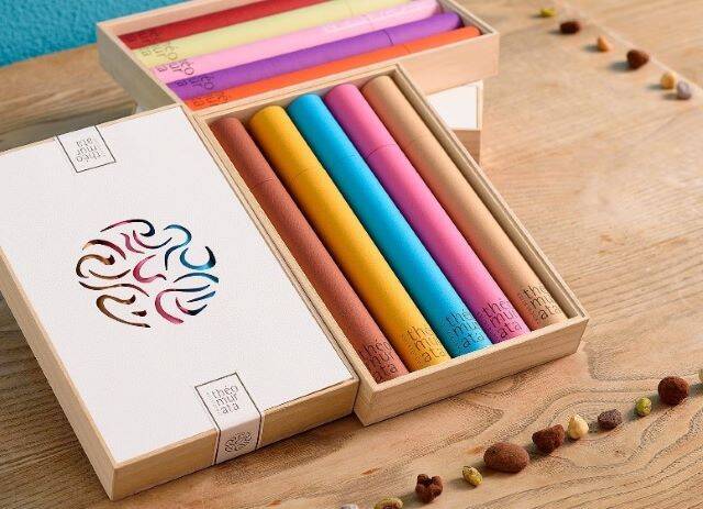 セミドライにしたフルーツやナッツ、コーヒー豆をチョコレートでコーティングした、見た目もカラフルでおしゃれなチョコレートです。フレーバーは全12種類。桐箱入りのセットや、アロマディフューザーが入ったセットもあるので大切な人へのプレゼントにもよさそうです。