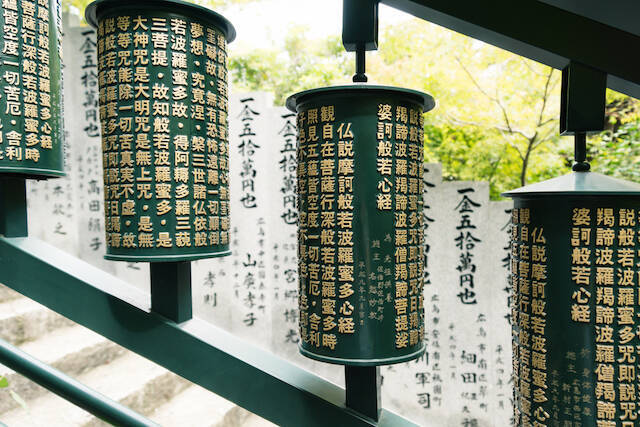 また摩尼殿に向かう階段には、1回まわせば、般若心経一巻を読んだ功徳が得られる「摩尼車(まにぐるま)」があります。