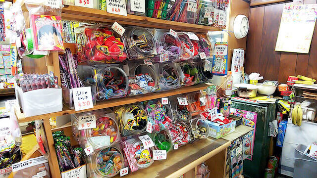 淡路屋は元々、昭和33年(1958年)に現店主のおばあさんが開業した食堂で、店名は初代店主の出身地から名付けられたそうです。平成6年(1994年)に引き継いだ際にクレープ屋に改装したそうなのですが、なぜか子どものお客さんばかりが来るようになったので駄菓子や玩具を置き、現在の形になったとのこと。駄菓子屋を運営しながら、行政に掛け合ったり、著名人に声を掛けたりと、駄菓子屋文化を未来に残すための広報活動のようなことも積極的に行っているそうです。