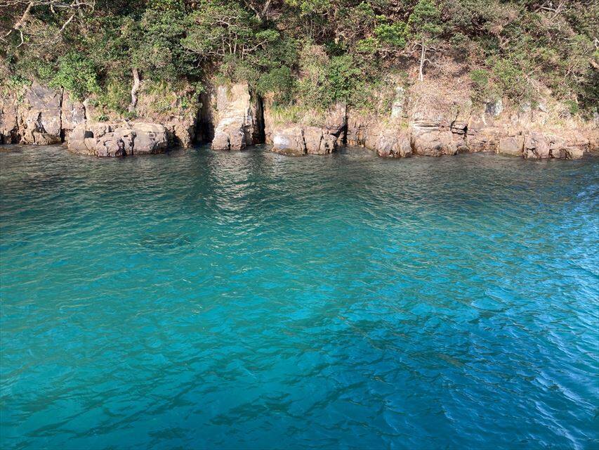 天候が良く、運航に問題がない場合は、通常通り40分かけて辰ノ島をぐるりと遊覧するコースになりますが、潮時や波・風の状態によってはコースが変更になることがあります。