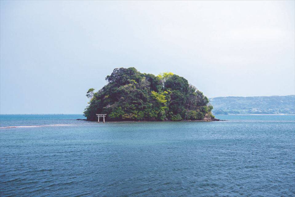 内海湾に浮かぶ小さな島。よくよく見ると鳥居があります。壱岐に行ったらぜひお参りしてみたい不思議な神社は「小島神社」。小島神社は島全体が神域で、小枝ひとつ持ち帰ることが許されないのだそう。