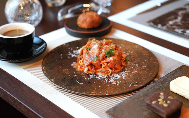 パスタの食感、麺とソースの一体感がこだわり。糖質をギリギリまで抑えながらモチモチした食感を楽しめ、ソースはイタリアのサルシッチャ(ソーセージ)を加えた旨味とトマトの酸味を混ぜ合わせナポリタン風に仕上げています。