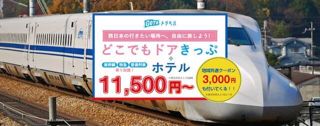 この「どこでもドアきっぷ+ホテル」は、どこでもドアきっぷとホテル宿泊がセットになったGo Toトラベルキャンペーンのツアーとなっており、2日間は、JR西日本のみ、3日間は、JR西日本・JR九州・JR四国の新幹線や特急が乗り放題となります(指定席も6回まで可能)。申し込みは、2名から受付で、大人1名+小人1名といった組み合わせでもOK!